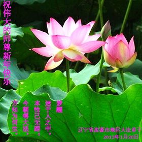 师父,在过去的这一年里,弟子跌跌撞撞的走了过来,是师父的一次次慈悲启悟,一次次的苦心安排,弟子才走过一个个魔难,师父,弟子让您太操心了…… 在此叩拜师尊! 辽宁朝阳大法弟子 二零一三年一月三十一日 辽宁省朝阳市凌源市我们母子大法弟子祝伟大慈悲的师尊新年快乐!