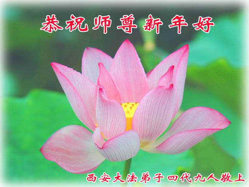 陕西省西安大法弟子四代九人恭祝师尊新年好!