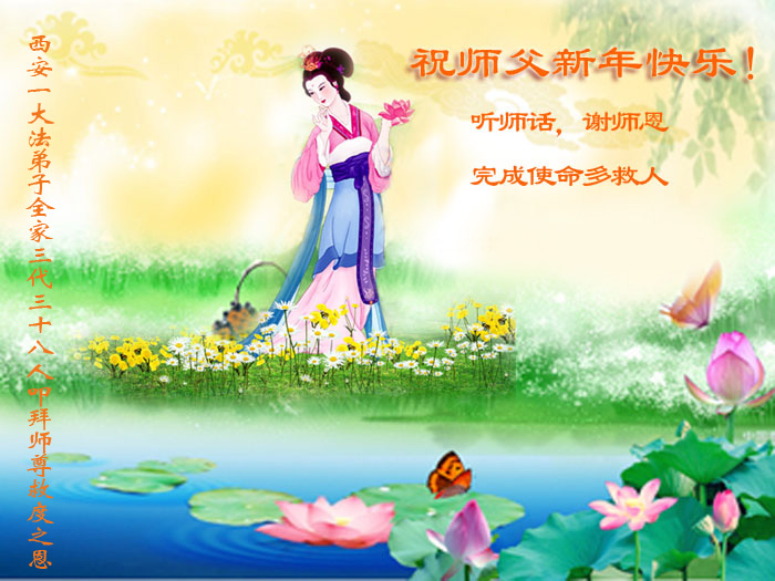 新疆住西安大法弟子全家恭贺师父新年好!