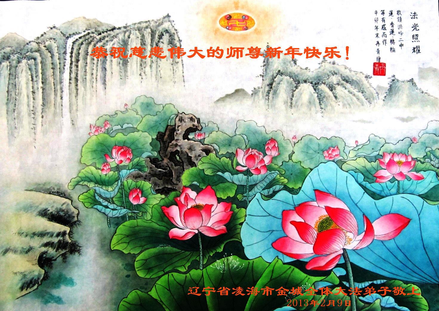 【明慧网二零一三年二月七日】 辽宁省锦州市古塔区一学法小组大法弟子恭祝慈悲伟大的师尊过年好!