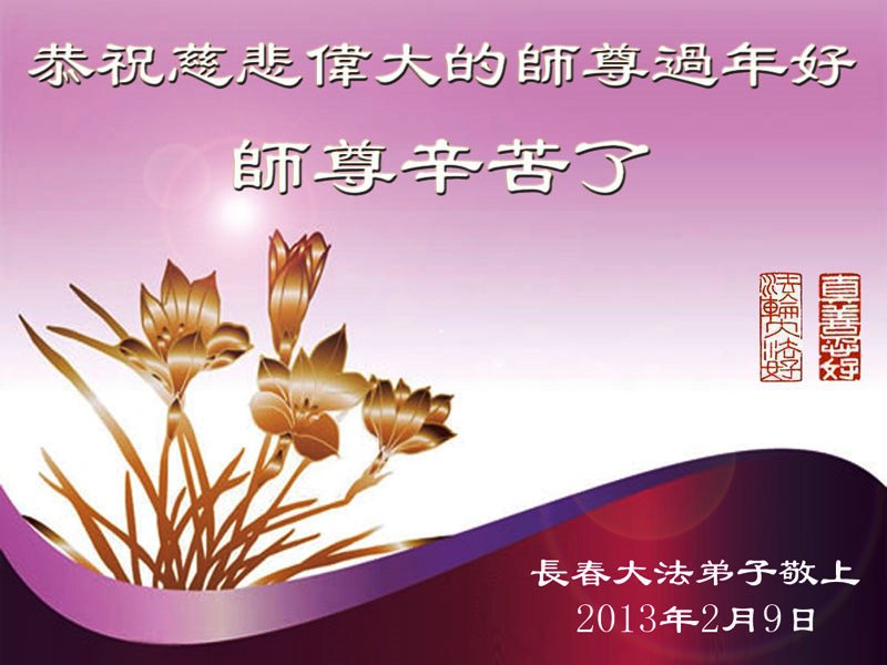【明慧网二零一三年二月七日】 吉林省长春市大法弟子给师父拜年 祝师父过年好!