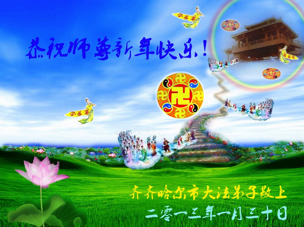 【明慧网二零一三年二月七日】 黑龙江省齐齐哈尔大法弟子恭祝师父新年好!