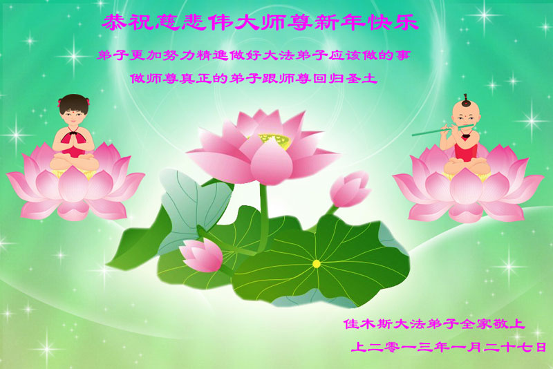 【明慧网二零一三年二月八日】 黑龙江省佳木斯大法弟子恭祝师尊新年快乐!