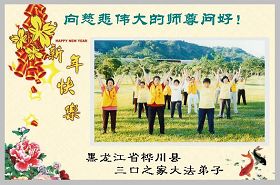 黑龙江省佳木斯市桦川县母女大法弟子向师父问好!祝师父新年快乐!