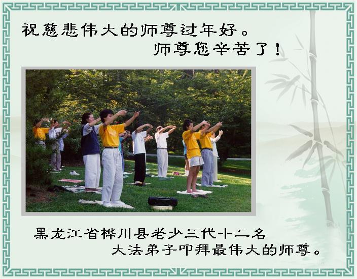 黑龙江省佳木斯市桦川县老少三代十二名大法弟子祝师尊过年好!