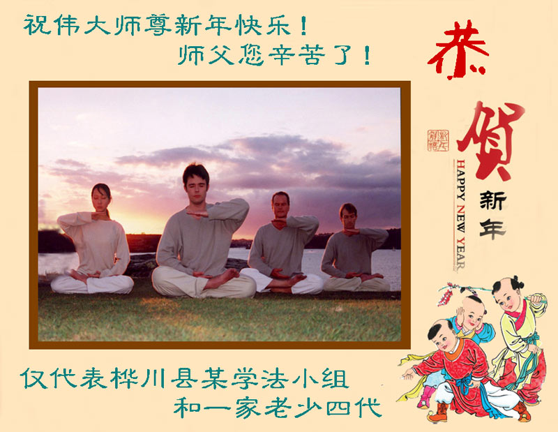 黑龙江省佳木斯市桦川县某学法小组和一家老少四代向师父问好!祝师尊新年快乐!