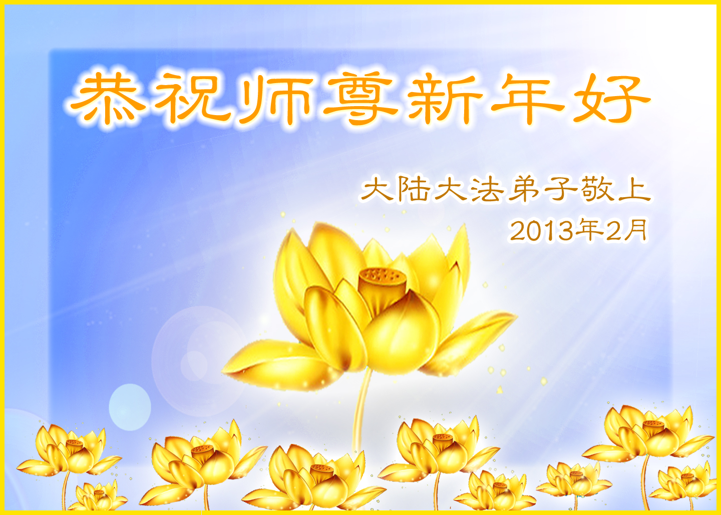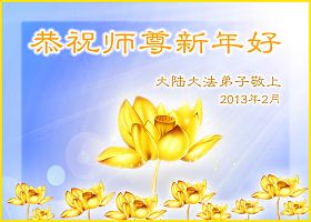 【明慧网二零一三年二月八日】中国新年到来之际,中国大陆和海外的大法弟子(包括新学员)和明白真相的世人,纷纷把发自内心的节日贺词、诗歌、自制的贺卡等寄给明慧网,恭祝李洪志师父过年好。数以万计的贺词、贺卡、诗词真诚温暖,驱散冬寒和迷雾,令人感动。