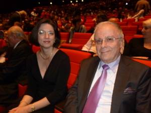 | 【明慧网二零一三年四月十六日】(明慧记者综合报道)二零一三年四月十二日至十三日,美国神韵纽约艺术团在巴黎会议中心(Palais des Congres de Paris)进行了两天三场的盛大演出。神韵的到来,犹如初春的太阳,给经历漫长寒冬的巴黎带来了温暖、快乐和惊喜。这是本年神韵在欧洲巡回演出的最后一站。三场演出场场爆满,盛况空前。神韵音乐家和舞蹈演员的风姿给观众留下了深刻的印象,人们对神韵纯善纯美的艺术表演报以阵阵热烈的掌声。观众中不乏政要人物、艺术名流,他们无不赞美神韵演出的辉煌壮观。 交响乐团指挥:神韵使各种音乐相圆容 Richard Boudarham是Bel'Arte交响乐团的创始人和常任指挥,同时也是演出制作人。他在国际上指挥了三百余场音乐会和歌剧,其中包括指挥世界著名的卡内基大厅(Carnegie Hall)合唱团、纽约大都会歌剧院独奏音乐家,伦敦交响乐团,也曾与诸如世界著名小提琴家Igor Oistrakh等音乐家合作。在观看了神韵艺术团的演出后,他表示:“无论从形式上还是从内涵上,这都是一场绝对超凡脱俗的演出。”  交响乐团指挥Richard Boudarham与抒情女高音Elena Glazyrina观赏了美国神韵纽约艺术团在巴黎的演出。 |
