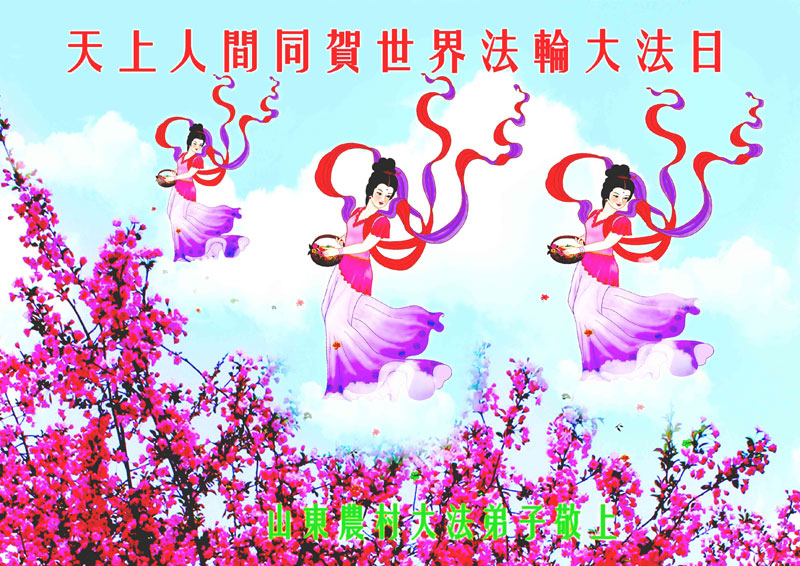 山东省烟台市栖霞农村大法弟子恭祝慈悲伟大的师父生日快乐!恭贺5.13世界法轮大法日!