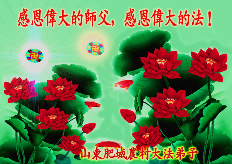 山东省泰安市肥城市农村大法弟子恭祝师尊生日快乐!恭贺世界法轮大法日!