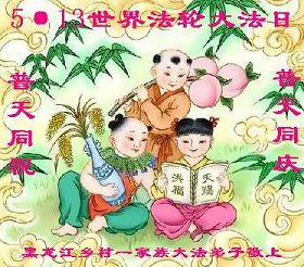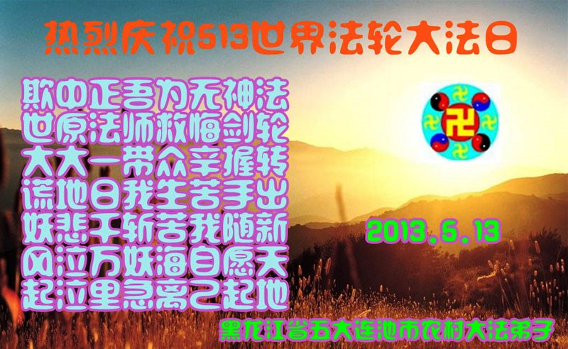 【明慧网二零一三年五月十日】 山东农村大法小弟子恭祝师尊生日快乐!恭贺世界法轮大法日!