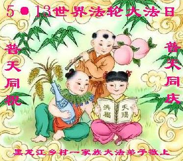 黑龙江乡村一家族大法弟子恭庆世界法轮大法日!恭贺法轮大法洪传二十一周年!恭祝慈悲伟大的师尊华诞快乐!