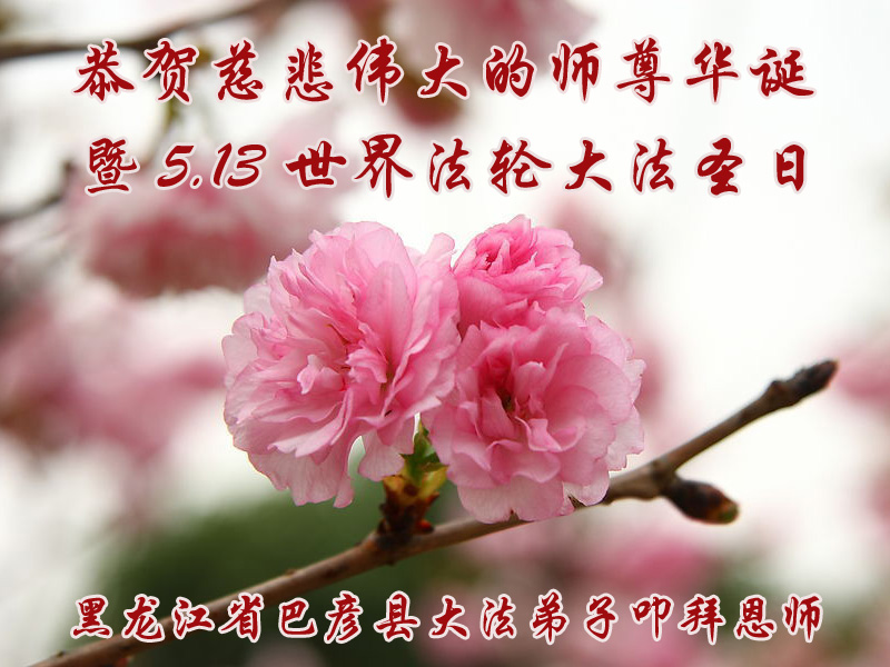 五月鲜花五月风 阴霾吹散显晴空 鲜花谨表敬师意 万苦千辛正大穹 黑龙江省哈尔滨市巴彦县大法弟子欢庆世界法轮大法日!恭贺师尊生日快乐!