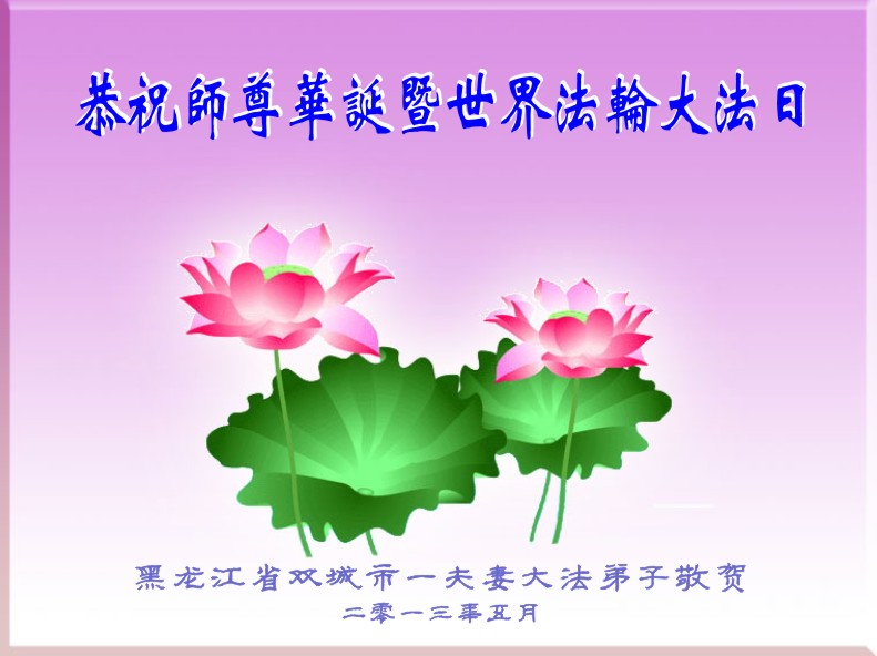 黑龙江省哈尔滨市双城市一夫妻大法弟子恭祝师尊华诞暨世界法轮大法日!