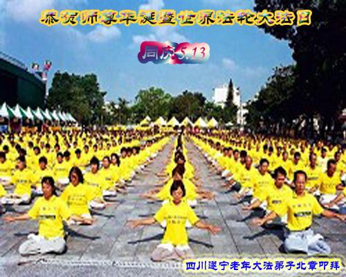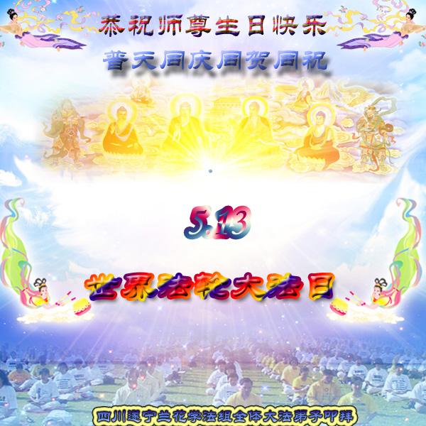 恭祝师尊生日快乐! 普天同庆五一三、世界法轮大法日 四川遂宁大法弟子