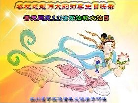 普天同庆! 恭祝慈悲伟大师尊生日快乐!共祝世界法轮大法日5.13 四川遂宁大法弟子恭贺师尊华诞,共祝世界法轮大法日!