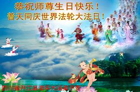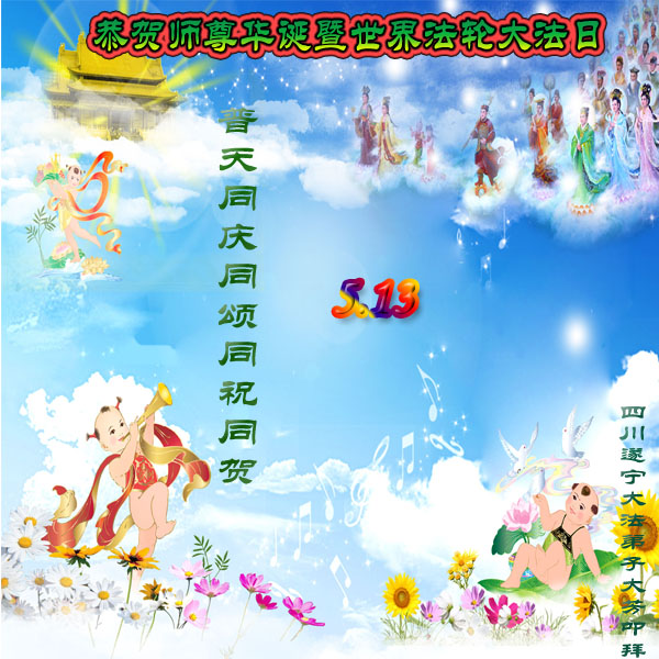 恭祝师尊生日快乐!师父辛苦了! 法轮大法好!真善忍好! 四川遂宁大法弟子恭贺师尊华诞暨世界法轮大法日!