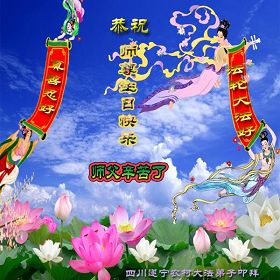 恭贺世界法轮大法日!叩拜慈悲伟大的师尊生日快乐! 四川遂宁大法弟子恭祝慈悲伟大师尊生日快乐!