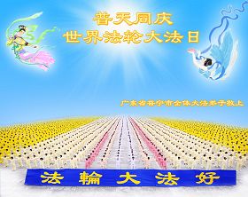广东省江门市台山市全体大法弟子向师父问好,祝师尊生日快乐,我们加大力度揭露邪共恶党的邪毒罪证,讲清真相,多救被毒害的众生,报答师尊的慈悲救度。 广东省汕头市全体大法弟子庆祝世界大法日,祝伟大师尊生日快乐!