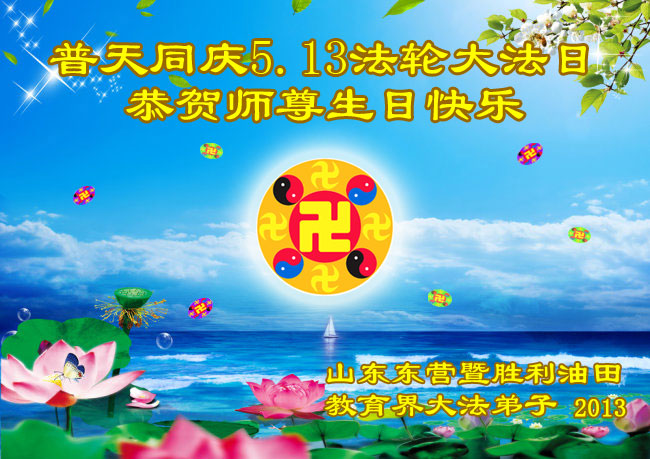【明慧网二零一三年五月十日】 山东东营暨胜利油田教育界大法弟子恭贺5.13世界法轮大法日!恭祝师尊生日快乐!