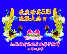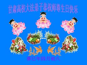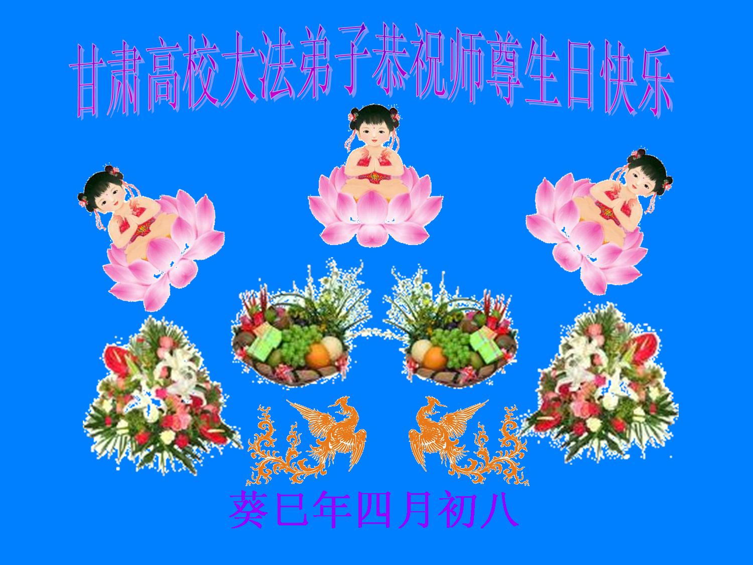 法轮大法日 环宇光明显 慈悲救大穹 天地颂师尊 江苏教育系统大法弟子敬贺 甘肃高校大法弟子恭祝师尊生日快乐!