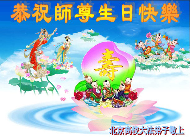 在正法即将结束之际,弟子们一定不辜负师父的殷切期望,更加精進,做好三件事,救度更多的众生。 北京高校大法弟子祝师尊生日快乐!