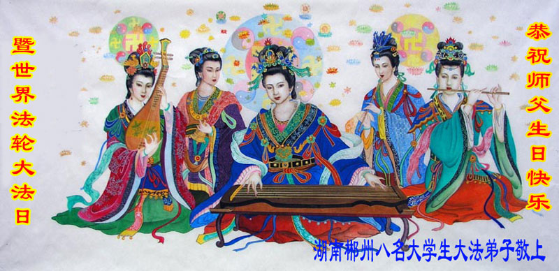 岳阳地区教育系统全体大法弟子在又一个全世界“法轮大法日”来临之际,在普天同庆之时,恭祝慈悲伟大的师尊生日快乐!