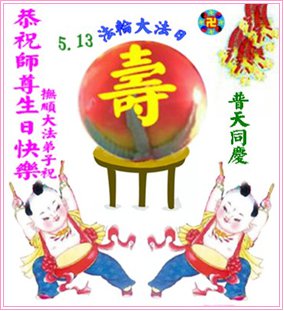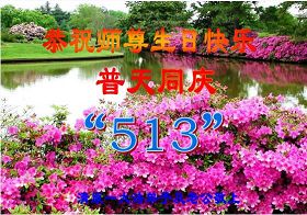 【明慧网二零一三年五月十日】 清原一大法弟子及老公恭祝师尊生日快乐!普天同庆世界法轮大法日!