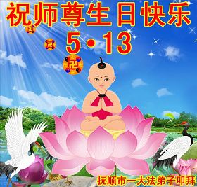 辽宁省抚顺大法弟子恭祝师尊生日快乐!普天同庆5.13法轮大法日!