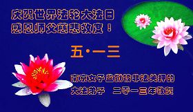 江苏省南京女子监狱被非法关押的大法弟子庆贺世界法轮大法日!感恩师父慈悲救度!祝师尊生日快乐!