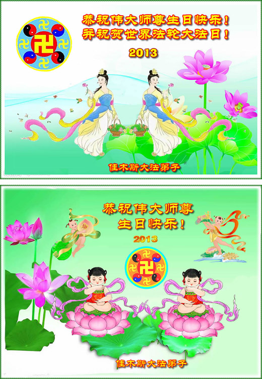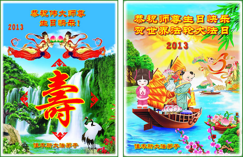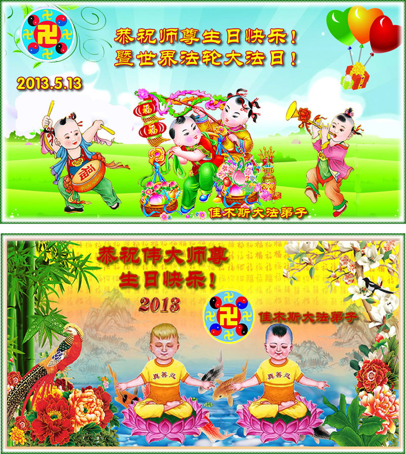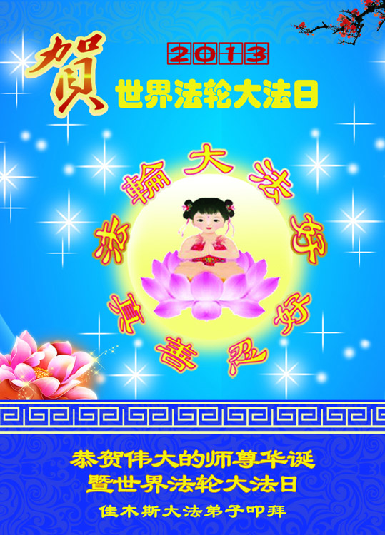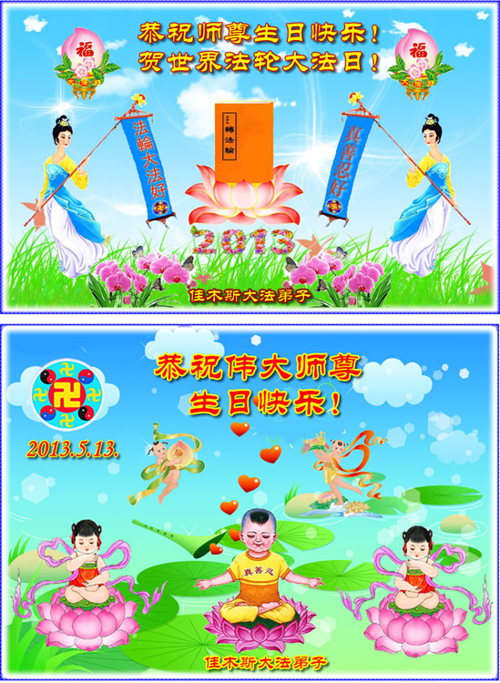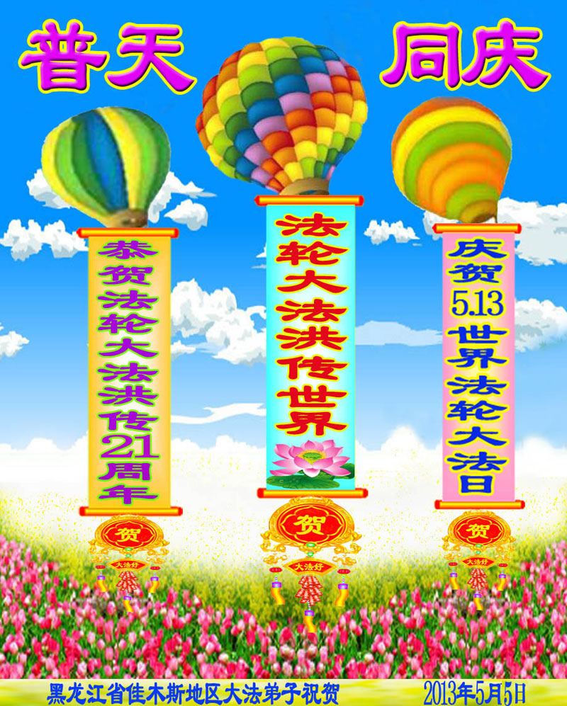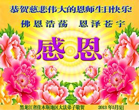 【明慧网二零一三年五月十日】 黑龙江省佳木斯大法弟子恭祝伟大的师尊生日快乐!贺世界法轮大法日!