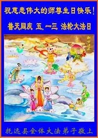 黑龙江省佳木斯地区一个边陲小镇全体大法弟子跪拜:恭贺师尊生日快乐!敬贺世界法轮大法日!