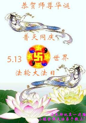在这伟大的法轮大法洪传二十一周年之际,我们向慈悲伟大的师尊问好,祝师尊生日快乐!感谢师尊的慈悲苦度,我们一定要做好三件事,完成史前誓约,跟师尊回家。 佳木斯某学法小组 2013年5月4日
