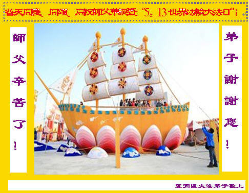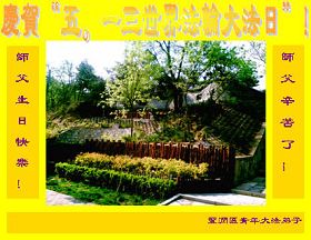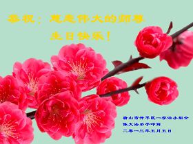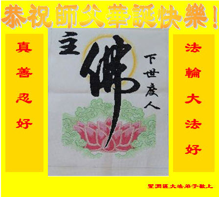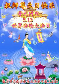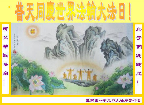 在这普天同庆、同祝、同颂的日子,小组全体大法弟子叩拜师父:师父生日快乐!合十! 河北省唐山市丰润区大法弟子恭贺世界法轮大法日暨师父华诞!师父生日快乐!