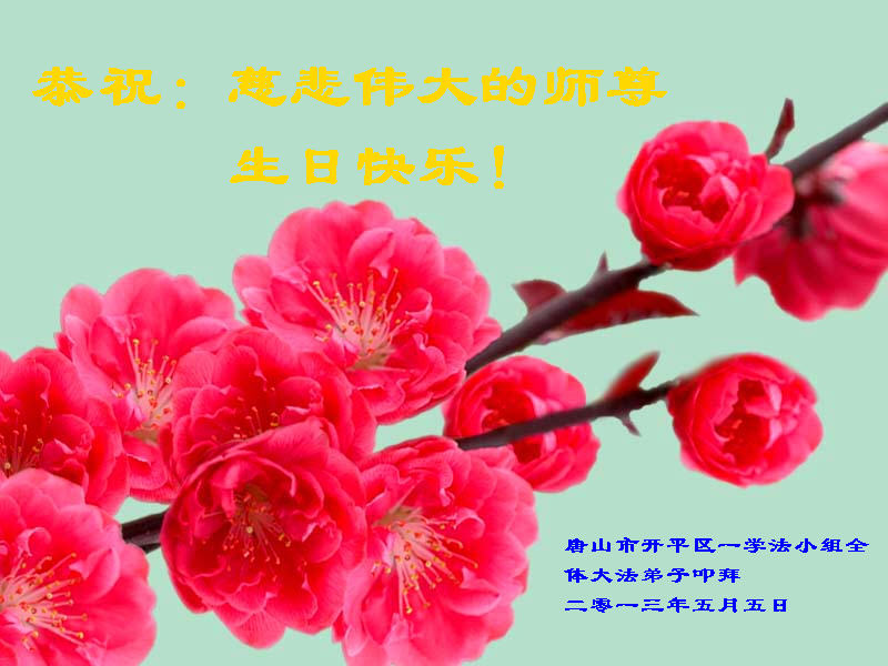 【明慧网二零一三年五月十日】 河北省唐山市大法弟子恭贺师尊传法二十一周年
