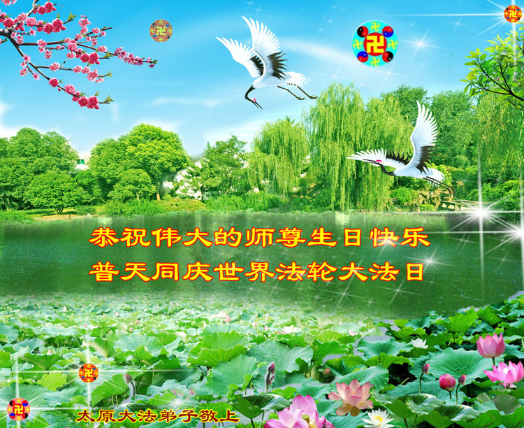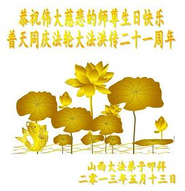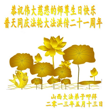 山西太原大法弟子恭贺“五一三”法轮大法日,恭祝慈悲伟大的师尊生日快乐!