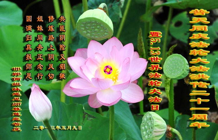 二零一三年五月十三日,全世界法轮大法日来临之际,河北固安大法弟子恭祝师尊生日快乐!多谢师尊慈悲救度! 河北一学法小组、项目组全体大法弟子恭祝慈悲伟大的师尊生日快乐!普天同庆世界法轮大法日!