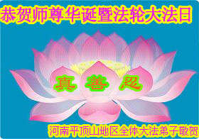 【明慧网二零一三年五月十日】 河南省平顶山地区全体大法弟子恭贺师尊华诞暨法轮大法日!
