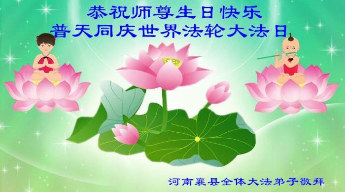 河南襄县全体大法弟子恭祝慈悲伟大的师尊生日快乐!