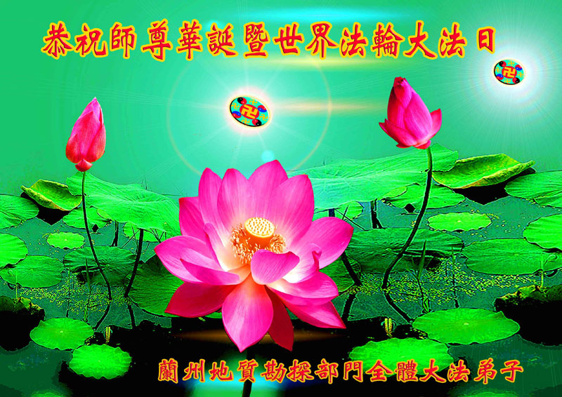 【明慧网二零一三年五月十日】 甘肃省兰州地质勘探部门全体大法弟子恭贺师尊华诞暨世界法轮大法日!