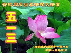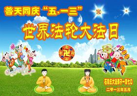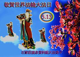 【明慧网二零一三年五月十日】 河北省石家庄市鹿泉市资料点大法弟子恭贺师尊华诞暨世界法轮大法日!