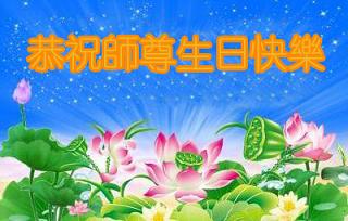 弟子感恩伟大慈悲的师尊,师尊您辛苦了!弟子倾尽人间的任何语言也无法表达师尊对弟子的救度之恩!是您把我从地狱中捞起洗净,用真善忍的法理把我从人世的沉沦中托起,走在返本归真的大道上。是您一次次的慈悲呵护着弟子,使我们建立的这个资料点稳固的走过了十几个春秋,无数的众生因看了这宝贵的真相得以進入未来,有多少众生因此而流下了感恩的泪水,人世间没有任何事情能够与一个生命明白了大法真相、了悟了做人的真正目地能够相比。师尊啊您放心吧,我们一定做合格的大法粒子,勇猛精進,做好三件事,不辜负师尊的慈悲苦度!跪拜师尊!合十! 河北省石家庄全体大法弟子恭祝慈悲伟大的师尊生日快乐!普天同庆世界法轮大法日暨大法洪传二十一周年!