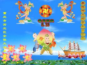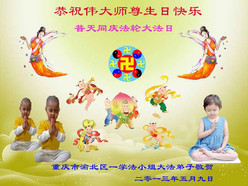 【明慧网二零一三年五月十日】 重庆市渝北区全体大法弟子恭祝伟大师尊生日快乐!普天同庆世界法轮大法日!