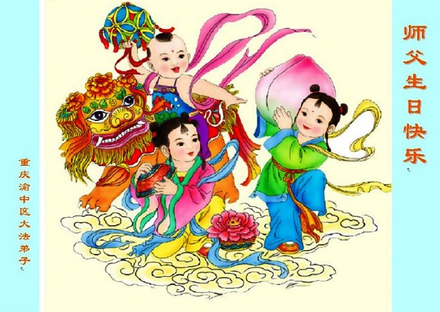 师父您好!您辛苦了!我们想念您!我们怀着无比崇敬的心情祝师父生日快乐!我们坚定走好走正师父安排的路,做好三件事:学好法、发正念、多救众生,完成史前大愿,圆满随师还。 重庆市万州区大法弟子庆祝大法洪传廿一周年!