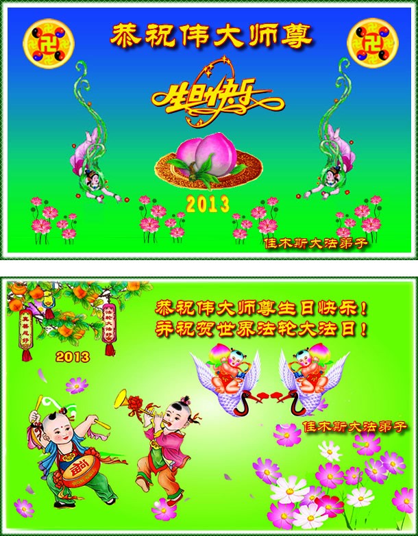 【明慧网二零一三年五月十一日】 黑龙江省佳木斯大法弟子恭祝伟大的师尊生日快乐!