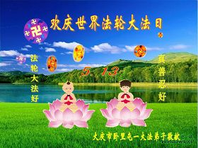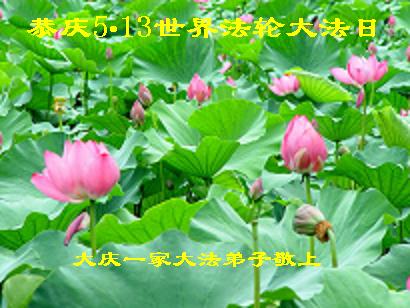 黑龙江省大庆一家大法弟子恭庆5.13世界法轮大法日!