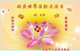 【明慧网二零一三年五月十一日】 黑龙江省大庆一家大法弟子恭庆5.13世界法轮大法日!