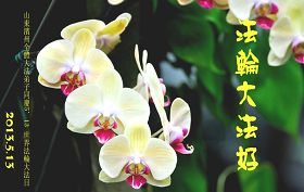 我是04年底正式走入大法修炼的,在这8年的时间里,从开始的做好人到现在的正法修炼中,有很多地方做的不如意,没有达到正法修炼弟子的标准,现在认识到了自己的不足,请师父放心,我一定尽自己最大的努力,做好三件事。走好师父给弟子安排的修炼道路。 最后我携全家人和家人中的其他大法弟子恭祝师父生日快乐,事事如意! 山东平原大法弟子敬上。 山东省烟台市栖霞市全体大法弟子庆法轮大法洪传二十一周年!