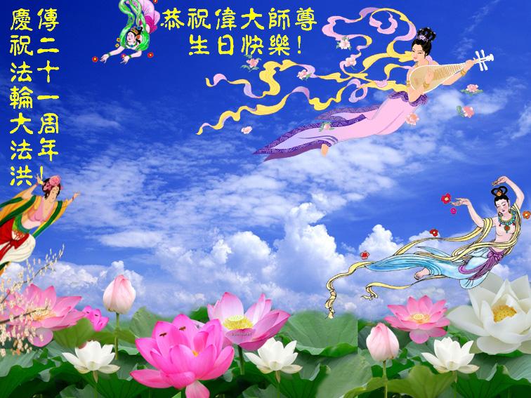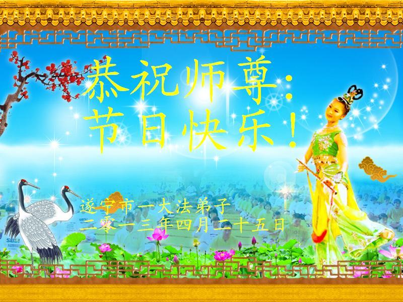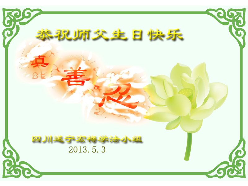 恭祝师尊生日快乐! 四川遂宁一大法弟子 二零一三年五月五日 四川遂宁莲花学法小组大法弟子恭祝师尊华诞暨世界法轮大法日!
