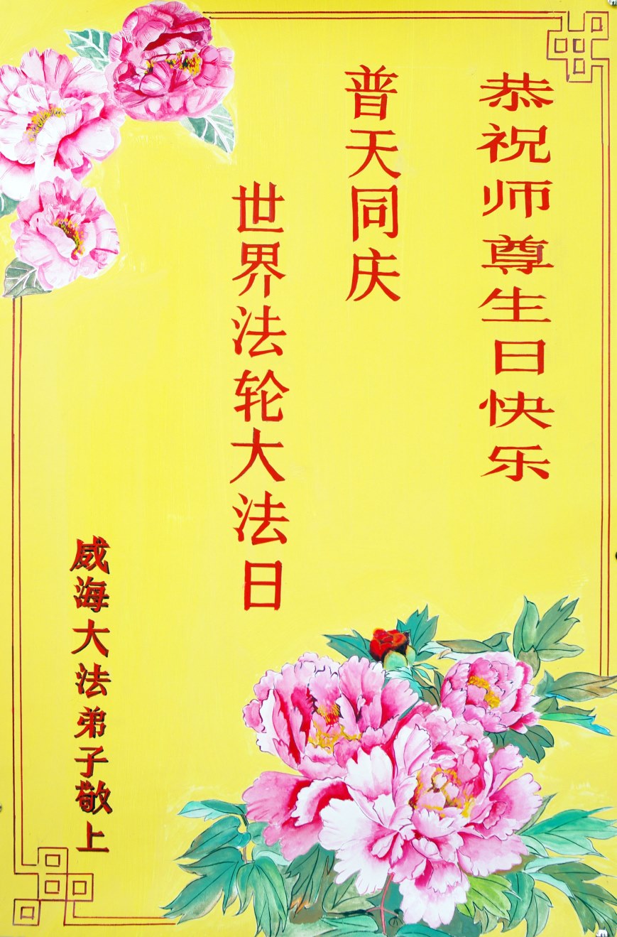 山东威海一学法小组全体大法弟子恭贺5•13世界法轮大法日!恭祝慈悲伟大的师尊生日快乐!